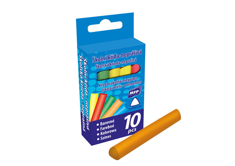Trojhranná školská krieda neprašná, asort 10 farieb, 10 ks v škatuli s eurozávesom
